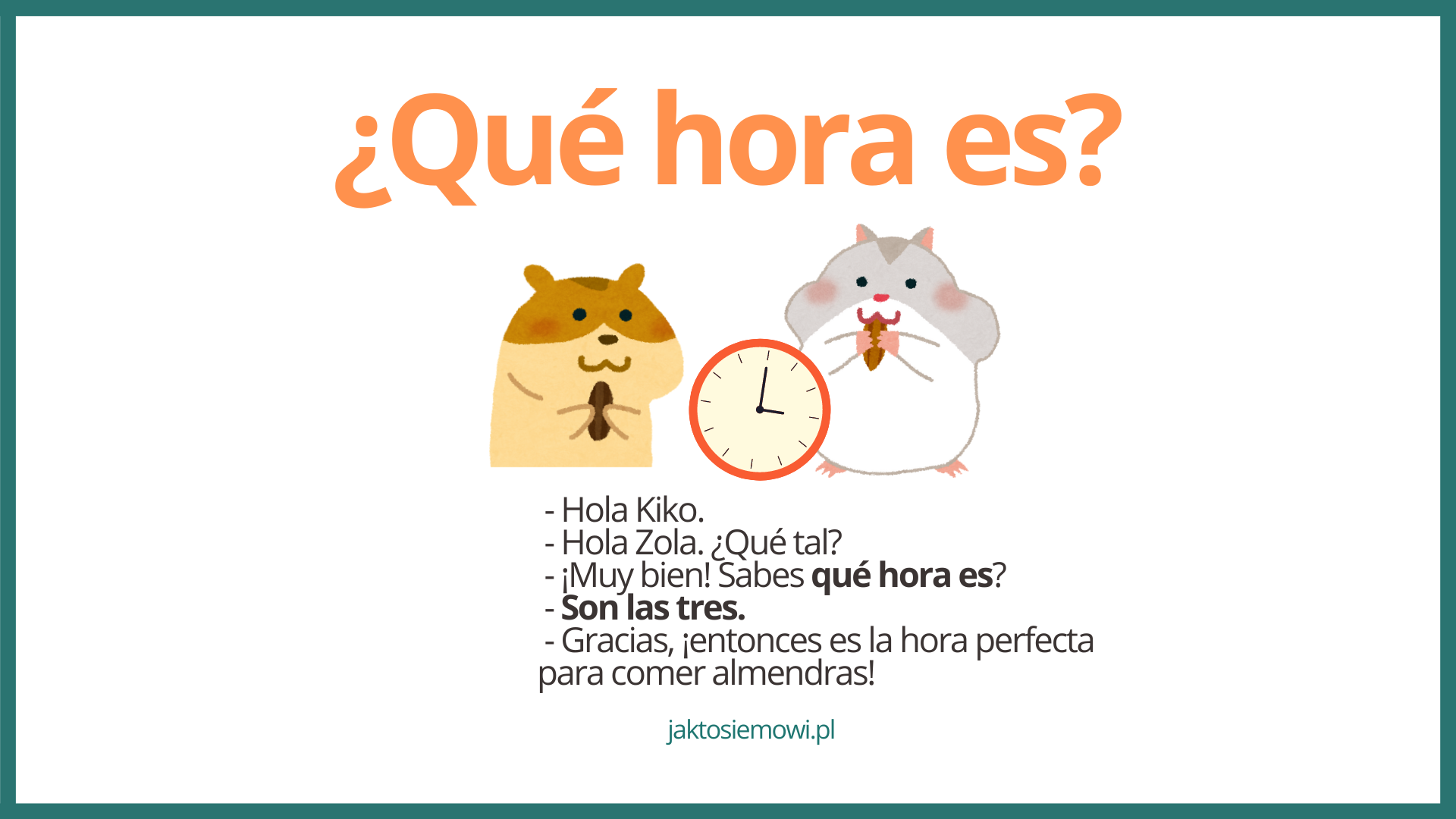 To najprostszy i najczęściej używany sposób. Niech Cię nie zmyli Manu Chao, który śpiewa “Qué hora son mi corazón?” w piosence “Me gustas tú”. 😀 Wybaczymy mu ten błąd gramatyczny w celu zrymowania czasownika “ser” z “corazón” (serce).